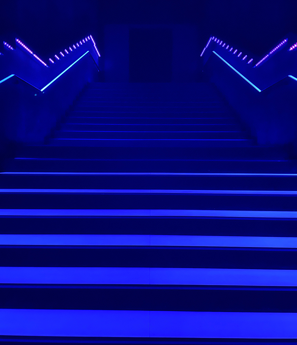入場口へ続くブルーの階段。