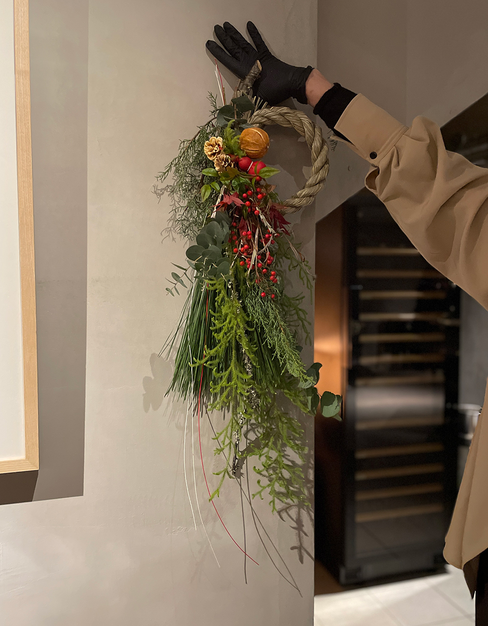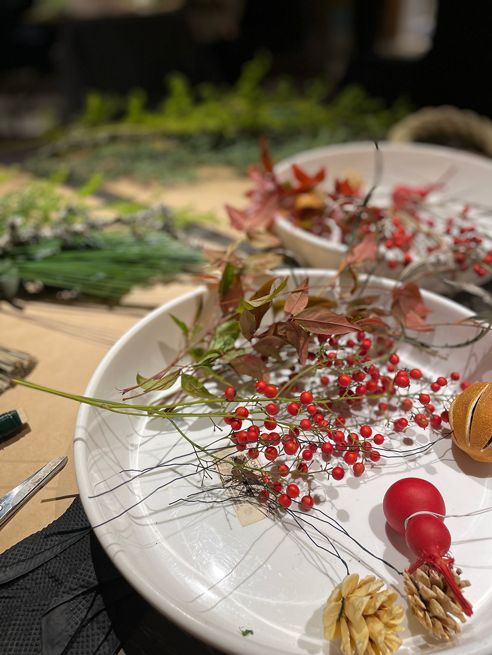 少し前、ワークショップで友達と一緒に作ったしめ飾り。